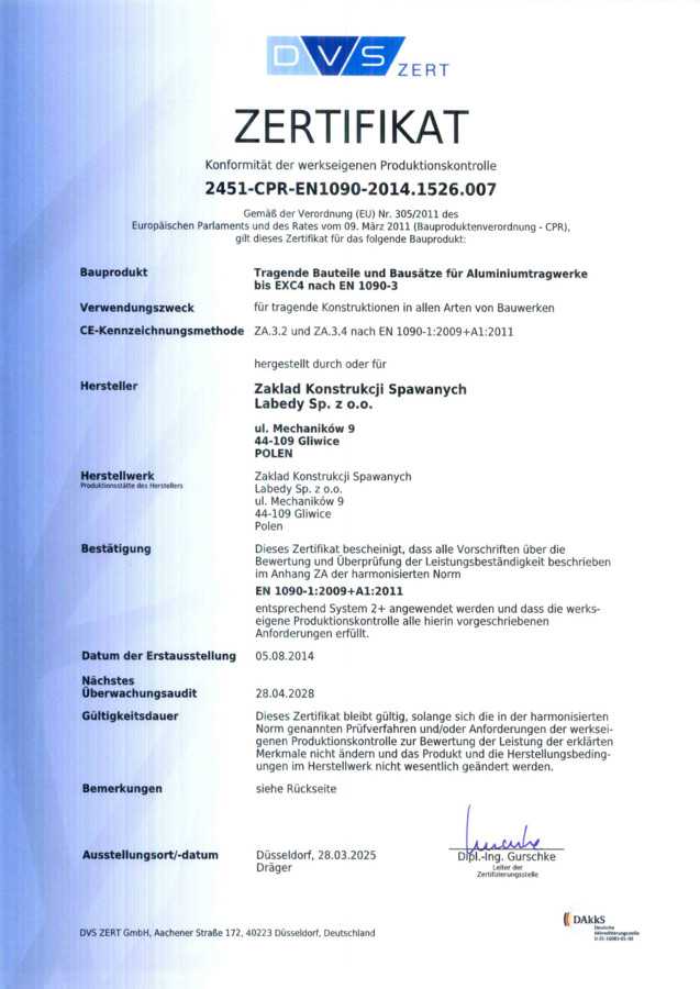 Zakład Konstrukcji Spawanych Łabędy Sp. z o.o. posiada zintegrowany System Zarządzania, który łączy systemy zarządzania jakością i środowiskiem oraz umożliwia firmie prowadzenie przejrzystych działań dla spełnienia oczekiwań klienta przy poszanowaniu środowiska naturalnego oraz zapewnieniu pracownikom bezpiecznych i higienicznych warunków pracy.